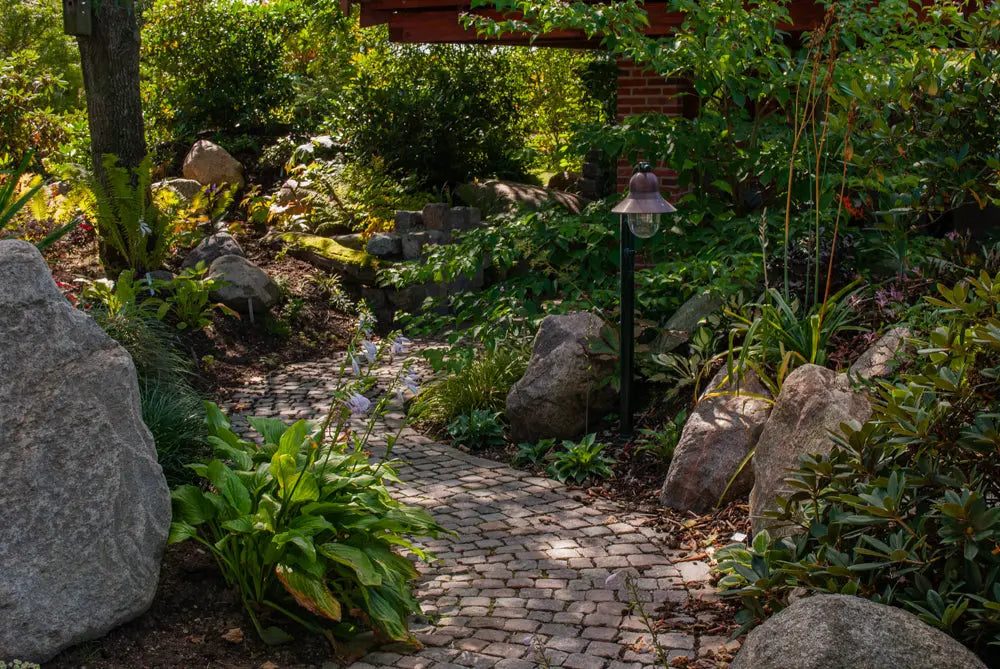• Kantafgrænsning: Bordursten eller kantsten i granit sætter prikken over i’et rundt om terrassen eller langs stisystemet.