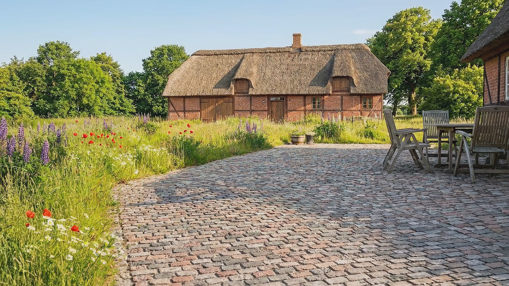 De varierende længder på stenene (typisk mellem 13 og 22 cm) gør dem oplagte til sætning i klassiske forbandt eller buer, hvilket understreger det rustikke 'herregårds-look'. Når stenene sættes, bør de bankes godt på plads i brolæggergrus for at sikre, at de ikke 'vrikker' over tid. Det er hårdt fysisk arbejde at sætte brosten, men resultatet er en tidløs belægning, der kun bliver smukkere med årene, efterhånden som den får patina.