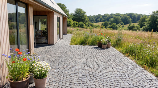- Skarp kantafgrænsning: Brug stenene til at skabe en elegant, stabil og vedligeholdelsesvenlig overgang mellem græsplæne, terrasse og blomsterbed. Som kantsten forhindrer de effektivt græsset i at brede sig og giver samtidig robotplæneklipperen en fast og jævn kant at køre på.