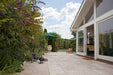 Travertin adskiller sig markant fra betonfliser ved sit levende farvespil. Ingen fliser er ens, og netop variationen i de lyse, sandfarvede toner skaber en terrasse, der aldrig bliver kedelig at se på. Stenen er behagelig at gå på med bare tæer om sommeren, da natursten ikke bliver lige så brændende varme som mørk beton eller granit.