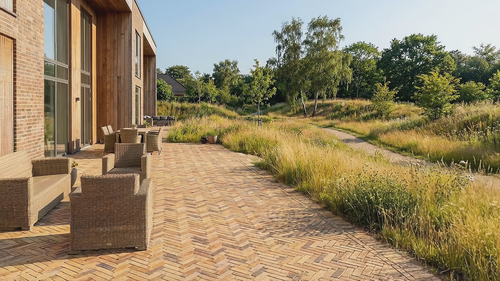 Det aflange format gør denne klinke særligt velegnet til at blive lagt i mønstre. Et sildebensforbandt med disse lange, slanke sten skaber en fantastisk dybde og leder øjet gennem haven. De afrundede kanter (uden fas) understreger det bløde, naturlige look.