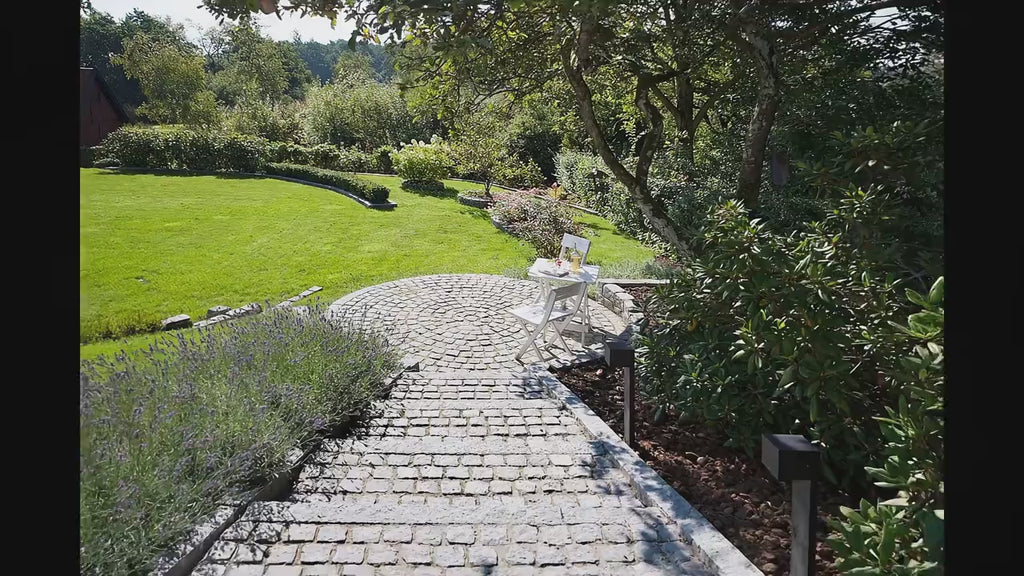 Portugisisk granit er kendt for sin høje styrke og ensartede kvalitet. Den mørke grå nuance er klassisk og tidløs, hvilket gør den nem at sammensætte med andre materialer. Du kan med fordel kombinere den med brosten i samme mørke nuance for et roligt og sammenhængende look, eller bruge den som kontrast til lysere belægningssten.