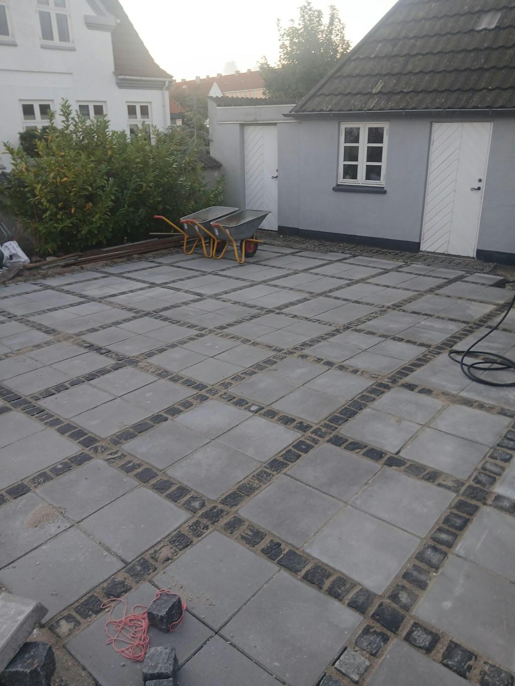 - Bærelag: Minimum 15-20 cm stabilgrus, som skal vibreres grundigt med en pladevibrator.