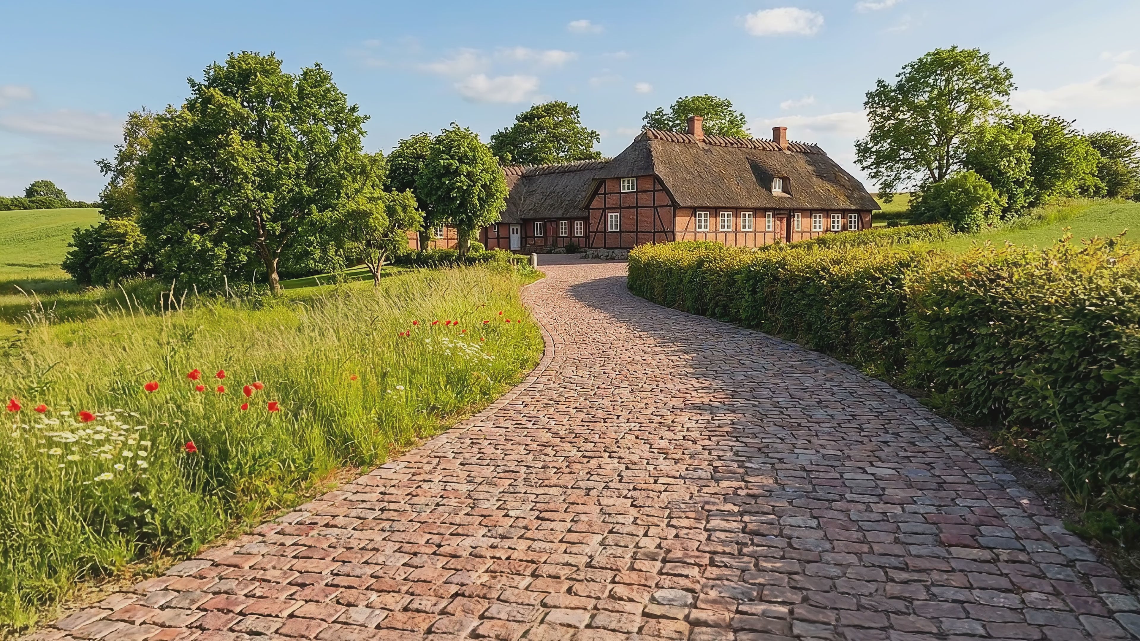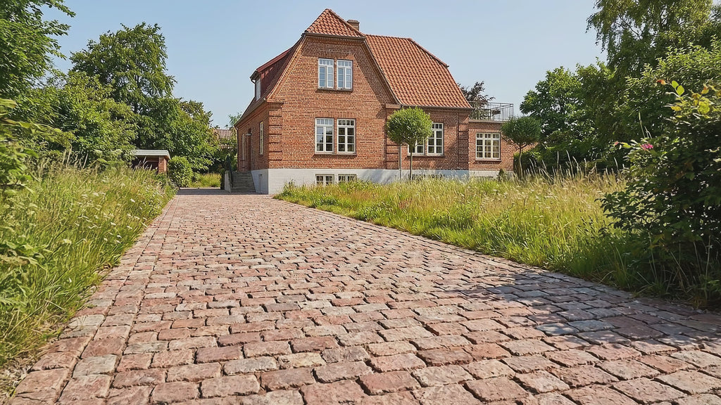 Brosten er ikke bare smukke; de er skabt til at blive brugt. Med en tykkelse og vægt som disse (ca. 12 kg pr. sten), får du en belægning, der uden problemer kan bære personbiler og tungere køretøjer, forudsat at forarbejdet er gjort korrekt. Hos Drømmehave anbefaler vi altid, at du opbygger et stabilt underlag, så du undgår kørespor.