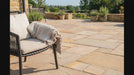 For at fuldende udtrykket kan du med fordel indramme belægningen med en række brosten i rød bohus eller en anden kontrastfarve, der fremhæver sandstenens glød. Er du i tvivl om farven, kan du også se vores alternativ, sandsten i romersk mønster, Gylden Giallo, som har en dybere gylden tone.