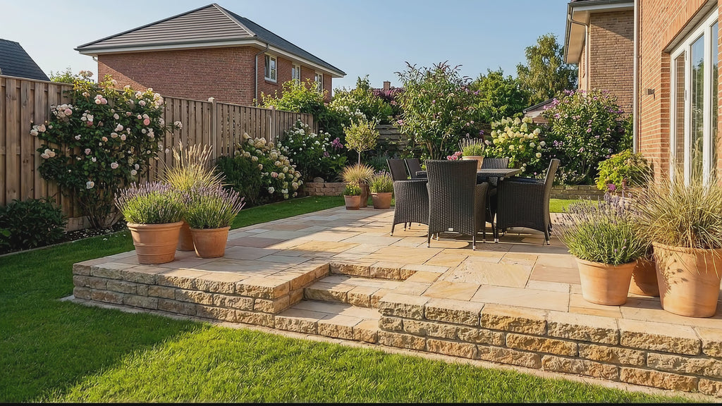 Hos Drømmehave ved vi, at holdbarhed starter med det rette materialevalg. Derfor tilbyder vi denne sandsten i to tykkelser: