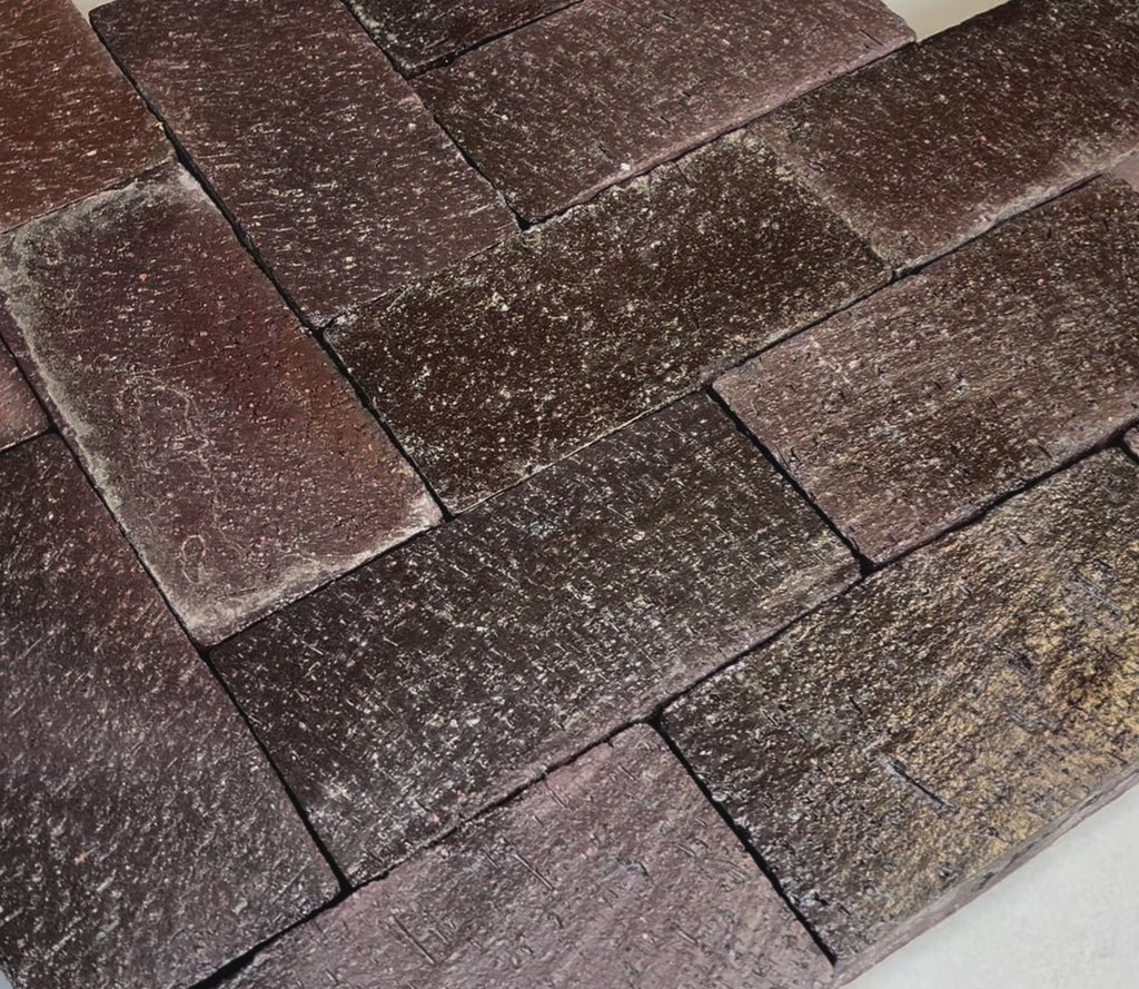 En eksklusiv, rustik og varm klinke med et farvespil over i det violette, grønne og brune. Klinken har rå, ufasede kanter og en overflade, som til tider virker næsten glaseret.