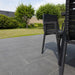 Det flammede farvespil i TrendLine-flisen står utroligt flot sammen med mørke naturmaterialer. Overvej at anlægge en kant af sorte granitskærver langs husmuren eller bedene for at fremhæve flisernes lyse nuancer og skabe en moderne kontrast.